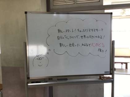 下の写真は、教室前のホワイトボードに先生たちが書いたメッセージです。