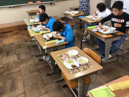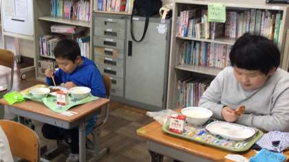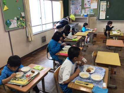 今日から給食が始まりました。 ランチルームで食べました。