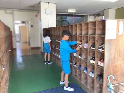 朝、登校すると、さっそく4年生が係活動をしていました。