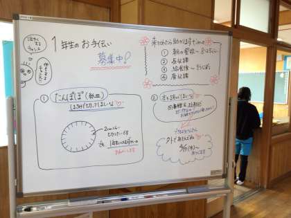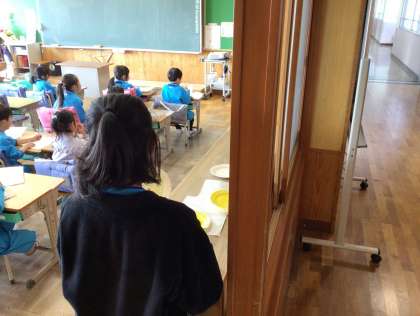 「どうしてやってるの?」と尋ねたら、「1年生の子は切るのが難しいから、ボランティアです」という返事でした。素敵です。