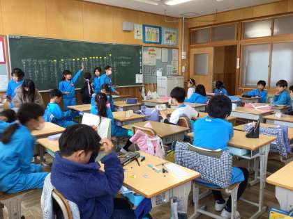 今日は、学級委員、学級書記、学級議員の学級リーダーが司会進行して、級訓を決めるための話し合いを行いました。たくさんの意見が出て、活気ある話し合いとなりました。