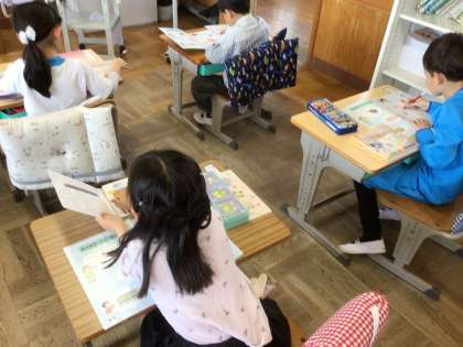 今日は、生活科の教科書を開いてみました。これからどんな学習が始まるのか、楽しみですね。