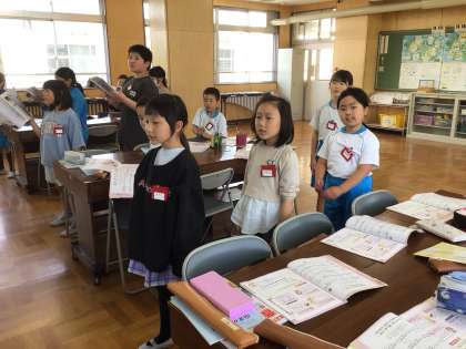 4年生は音楽室を使って授業が行われます。みんなで歌の練習をしました。