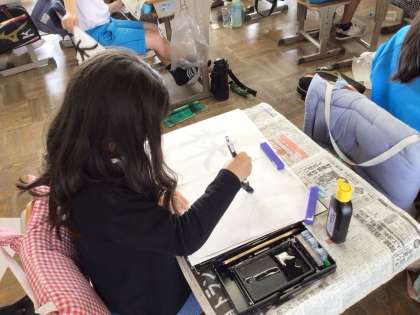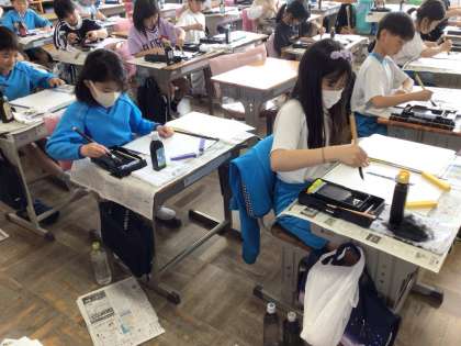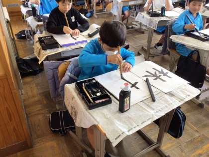 今日は毛筆で「林」を練習しました。静かに取り組んでいました。