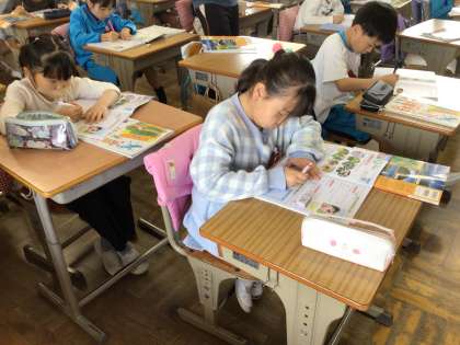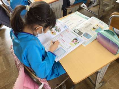 理科の授業です。天気と気温の学習をしています。調べたことをノートにまとめていました。