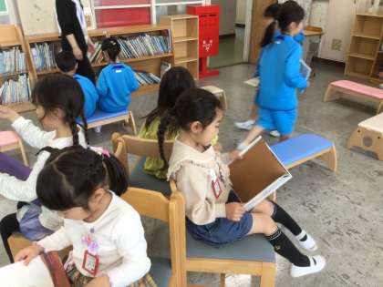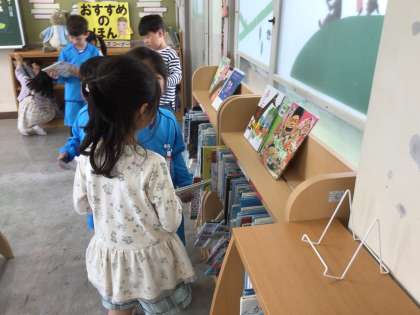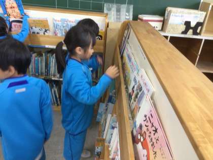図書館で、初めて本を借りました。図書館カードを使い、バーコードを読み取ってもらうことを教えてもらいました。1年間で、どれだけの本に出合えるかな?楽しみですね。