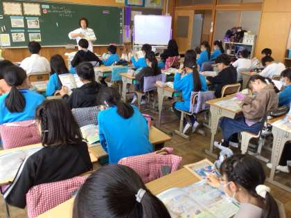 2組は外国語科で、6年生の英語学習の目標を聞きました。
