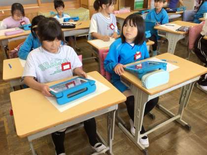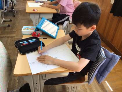 粘土が完成した後に、花が咲いた様子を想像して画用紙にかきました。