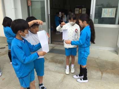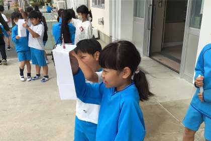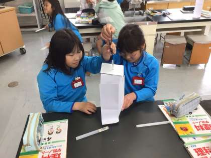 1日の気温の移り変わりを調べています。1時間おきに外と室内の気温を測っています。