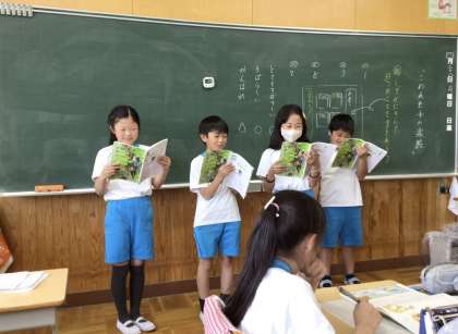 今日は、こわれた千の楽器の音読発表会を行いました。1人1場面ずつ読みました。