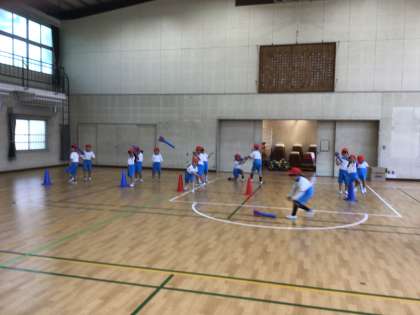 体力テストに向けて投運動に取り組みました。 投げるコツを掴んできました。