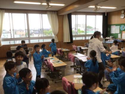 みんなで元気いっぱい歌いました。体もたくさん動かして、笑顔もいっぱいになりました。