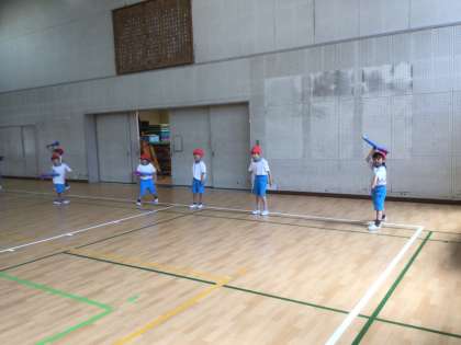 投げの練習を頑張りました。より遠くに飛ぶように、友だちと競争しました。
