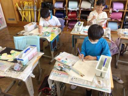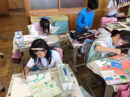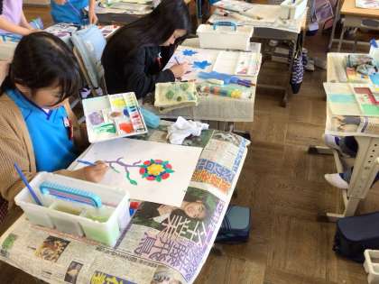 今日は、まぼろしの花を絵の具を使って表現しました。