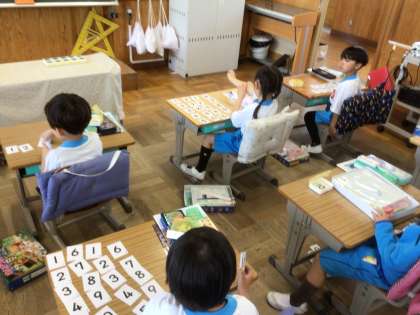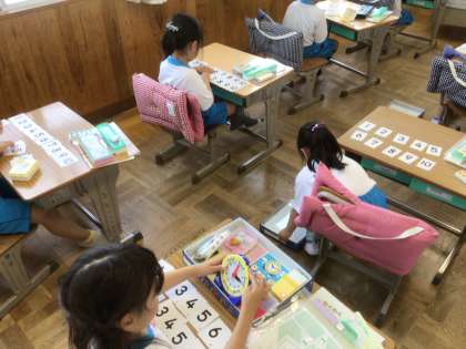 「かずとすうじ」の学習です。数カードを使って数を順番に並べました。