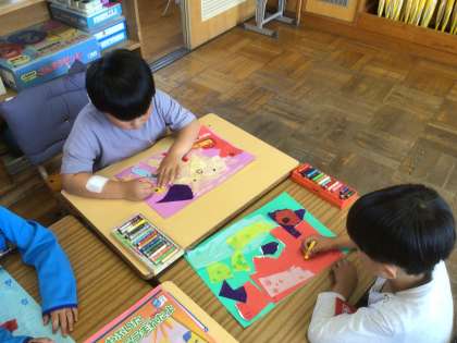 作品の仕上げです。どんな作品になるかな?