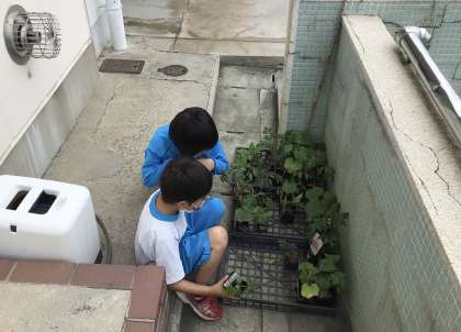 2年生の子たちが、苗を持ってきました。