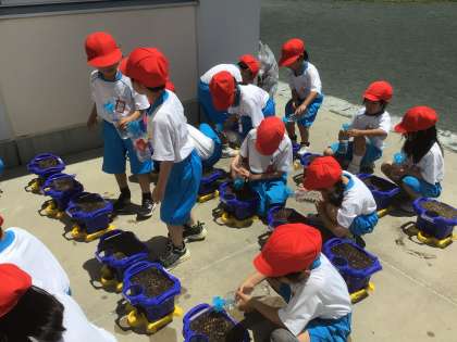 自分でやろうとする姿が、とっても頼もしく感じましたよ。土が重くても、頑張って持ち上げて植木鉢に入れていました。種も無事にまくことができ、最後にお水をたっぷりあげました。