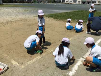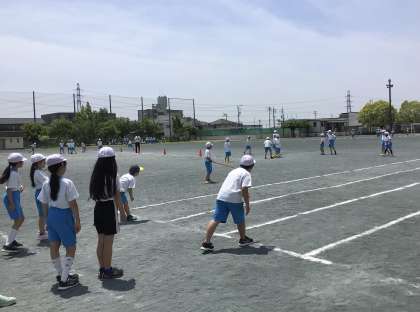運動場は、さわかな風が通って、運動しやすい天気です。