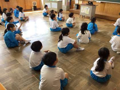 5文字のものを探そう、という問いに、子どもたちは指を折って探しました。