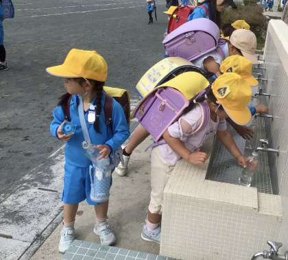 あさがおのお世話が始まりました。お水をたっぷりあげていました。6年生が、優しく見守ってくれる姿もありました。