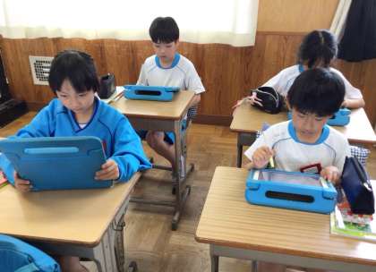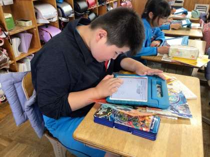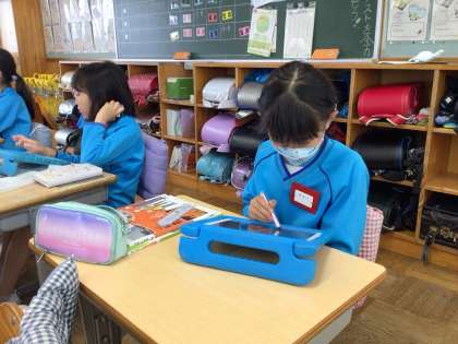 今日は、先生から説明を聞いた後に、学習用タブレットを使って上水道の仕組みの練習問題に取り組んでいました。