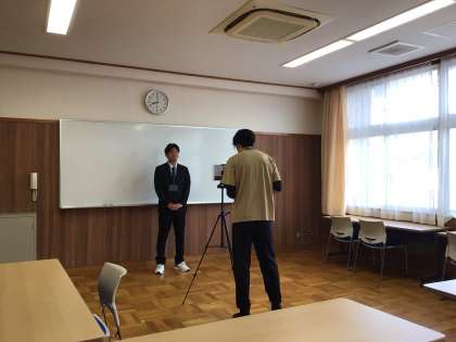 ライブ配信で教室にいる子どもたちに自己紹介をしました。