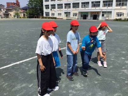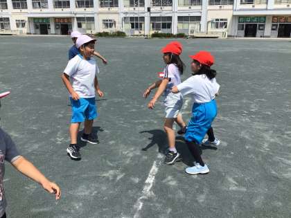 今日は、教科書に出てきたニュージーランドの遊びであるブルラッシュを体験しました。