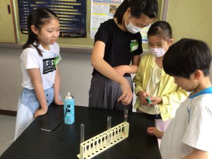「ものの燃え方」の実験をしました。班で協力して、上手にできました。