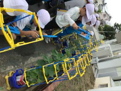 今日は夏野菜の観察をしました。植えたときからとても成長していて、新しい発見がたくさんあったようです。