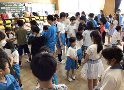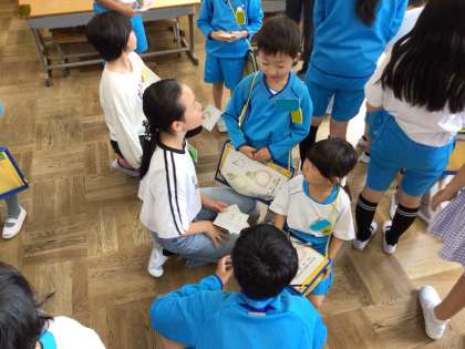 1年生の教室に6年生の子たちがきてくれました。
