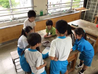 下の写真は、昨日の通学団会で、並び方などを話し合っている様子です。