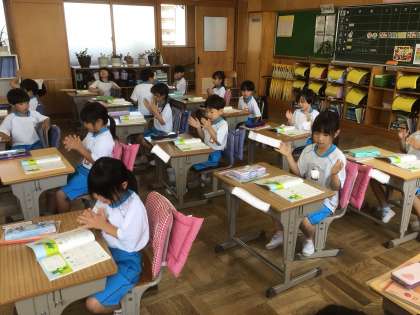 「ねことねっこ」の学習です。促音の表記の仕方や、読み方の練習をしています。みんなで、手で音を表して楽しみながら練習しました。