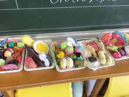 出来上がった「お弁当」は、ごちそうがいっぱいです。愛情もたっぷり入っていますよ。どうぞ召しあがれ!