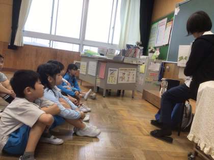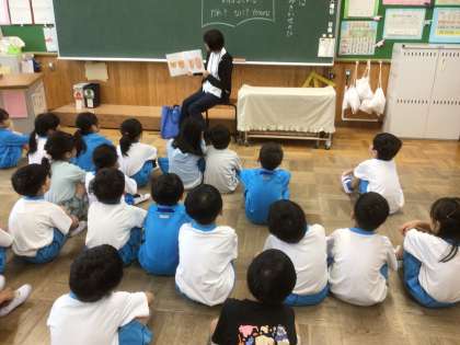 今日は、読み聞かせの日でした。「あさがお」の本を読んでいただき、土の中の様子や種の中の話など、知らないことをたくさん教えてもらいました。