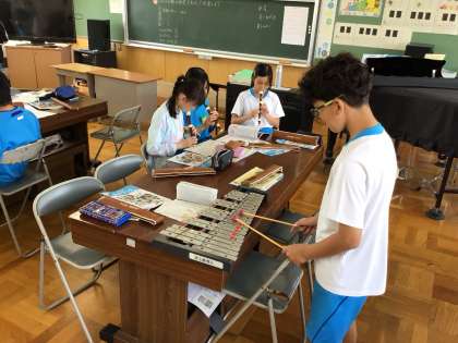 木琴や鉄琴、リコーダーなどの楽器で、それぞれの音色の特徴を感じ取って演奏しました。