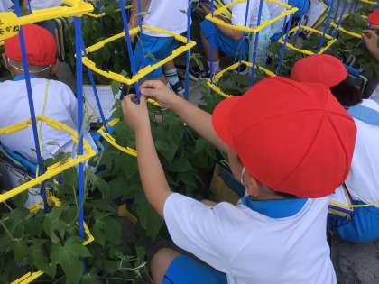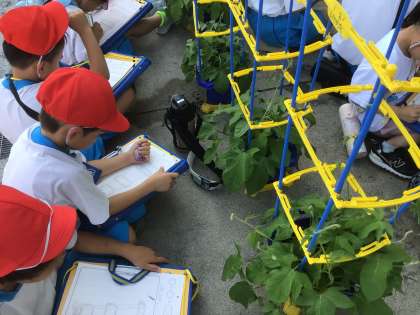 アサガオのつるの観察です。 どんなふうに伸びているのかな。