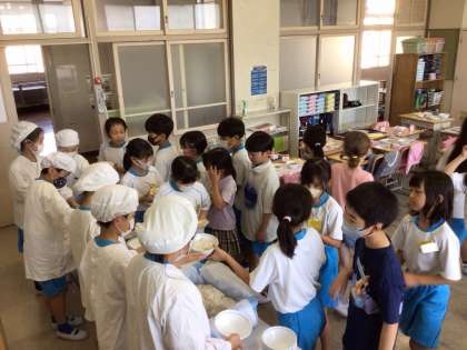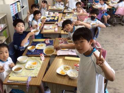給食当番頑張ってます! 楽しく食べる時間を増やしたいね。