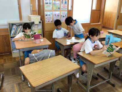 1組の様子です。朝の準備が終わってから友だちと話をして過ごしています。