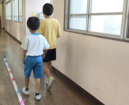 委員会の子たちが、廊下を安全に歩くために、ツルを折って中央に貼ってくれています。