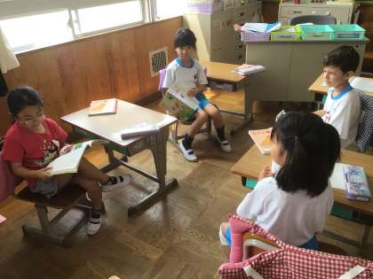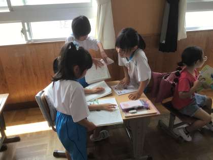 「おおきなかぶ」の学習です。グループで、音読発表の相談をしています。