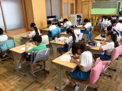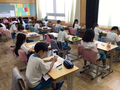 今日は、単元テストを行いました。真剣な表情で取り組んでいました。