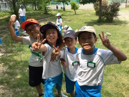 校庭に行ったら、子どもたちが遊んでいました。
