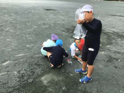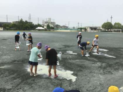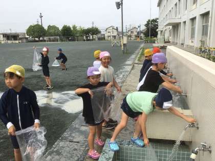 水道につながっているホースも使いました。みんなで、お水のかけ合いっこが始まっていました。
