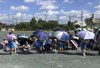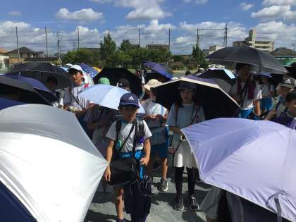 暑いので教室に出る時間を学年で揃えて、外で待っている時間をなるべく短くしています。
