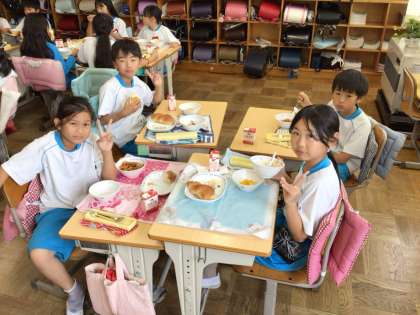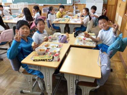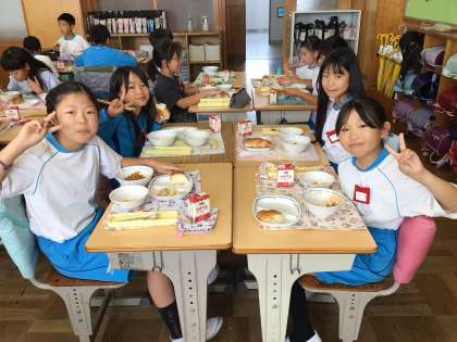 この日のメニューは、ツイストパン、ビーンズマゼドアン、みかんゼリーミックス、なすとペンネのトマト煮、牛乳でした。みかんゼリーミックスがとても人気がありました。