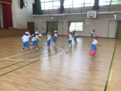 学級で、ドッジボールをしたり宝とりゲームをしたりしました。涼しい体育館で、気持ちのいい時間を過ごしました。