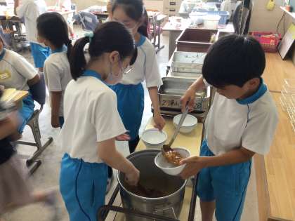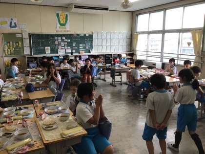 配膳もみんなでがんばっています。 みんなでいただきます!