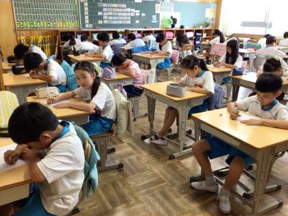 授業の初めに新出漢字のテストを行いました。満点を目指して真剣に取り組んでいます。