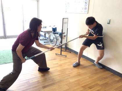 さすまたの使い方等、児童の安全確保のための方法を、実践をしながら具体的に学びました。